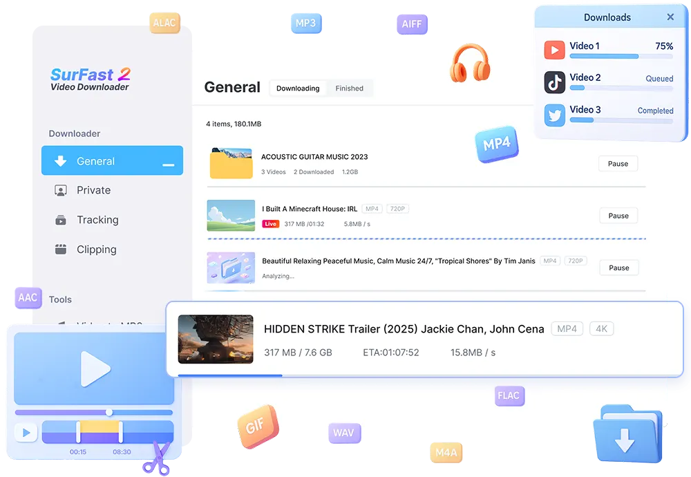 Moreover, SurFast Video Downloader comes packed with powerful features designed to meet a wide range of download needs: