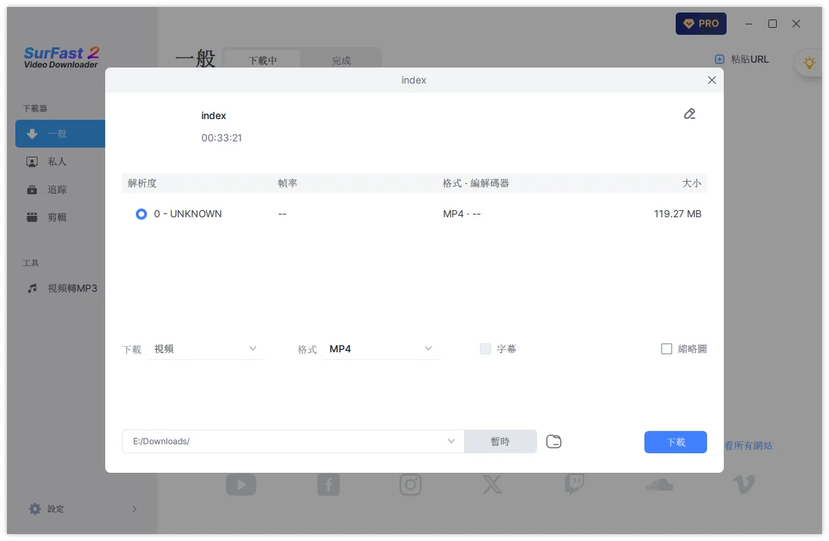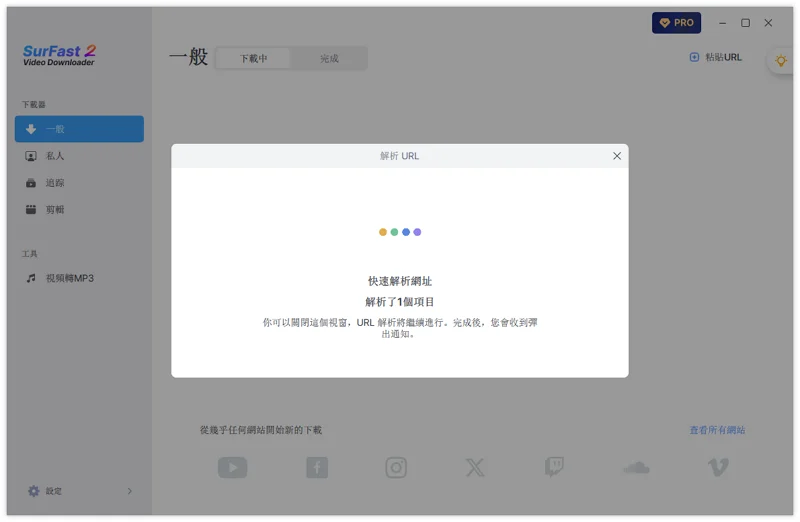 開啟 SurFast Video Downloader,貼上你剛才複製的劇迷影片連結,等待工具自動解析。